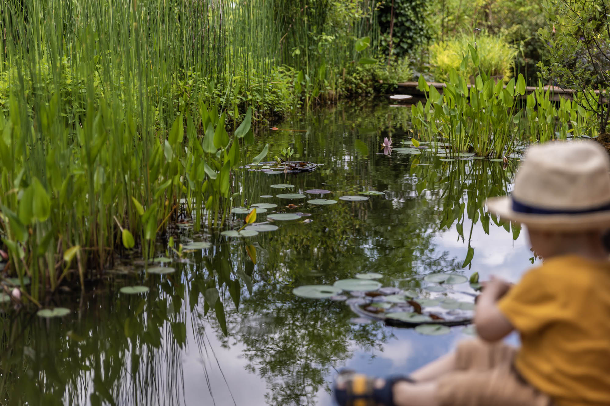 Au cours de la visite, on flâne dans plusieurs espaces aux ambiances différentes. Entre plantes exotiques, potager aux légumes oubliés, bassin fleuri de nénuphars, terrasse et hamacs qui invitent à faire une pause… Le Jardin des Paradis mêle subtilement art & nature : soyez attentifs aux petits détails qui se cachent un peu partout !