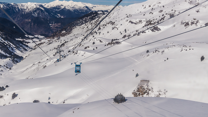 Le départ se fait d’Encamp, à 1333 mètres d’altitude. Le télécabine traverse la vallée des Cortals d’Encamp pour rejoindre la Collada d’Enradort à 2 506 m d’altitude.