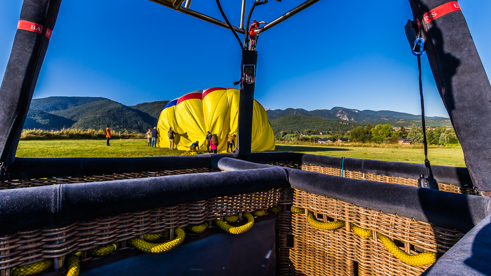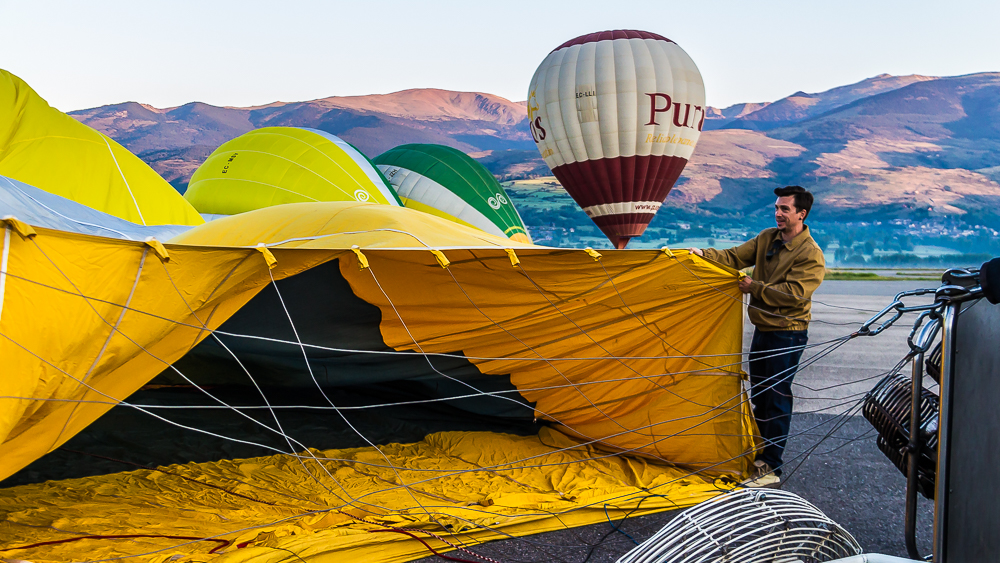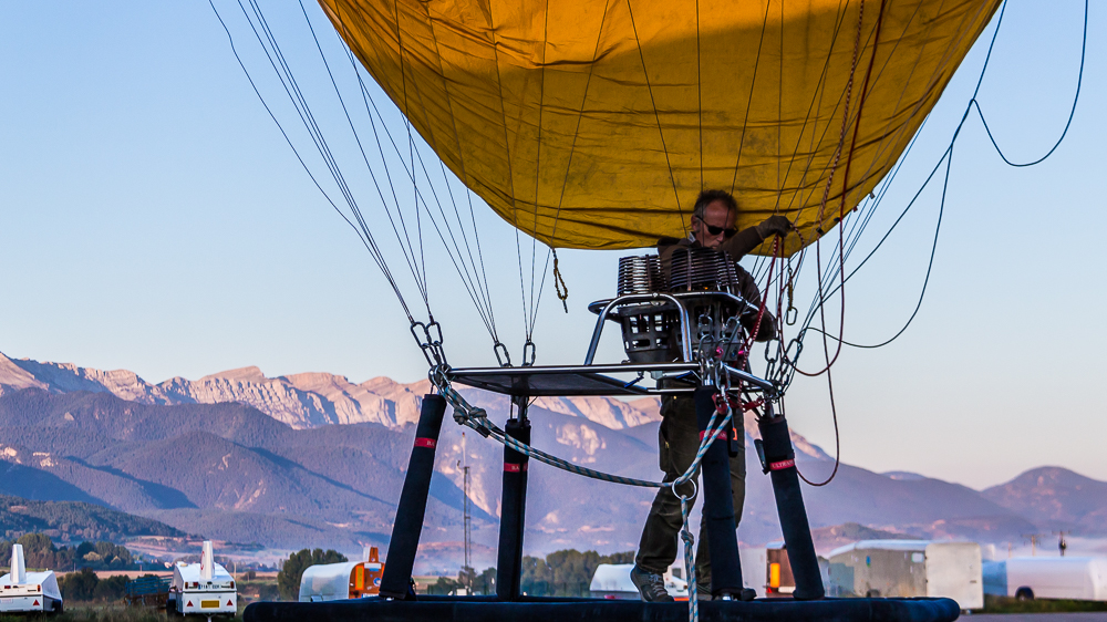 Un matin d’Août, nous sommes arrivés à l’aube à l’aérodrome de Cerdagne, tout près de la frontière Espagnole. Il faisait froid et nous avons été accueillis par un café chaud et par le sourire bienveillant de Jordi, notre pilote, qui s’affairait déjà près de la nacelle en osier.