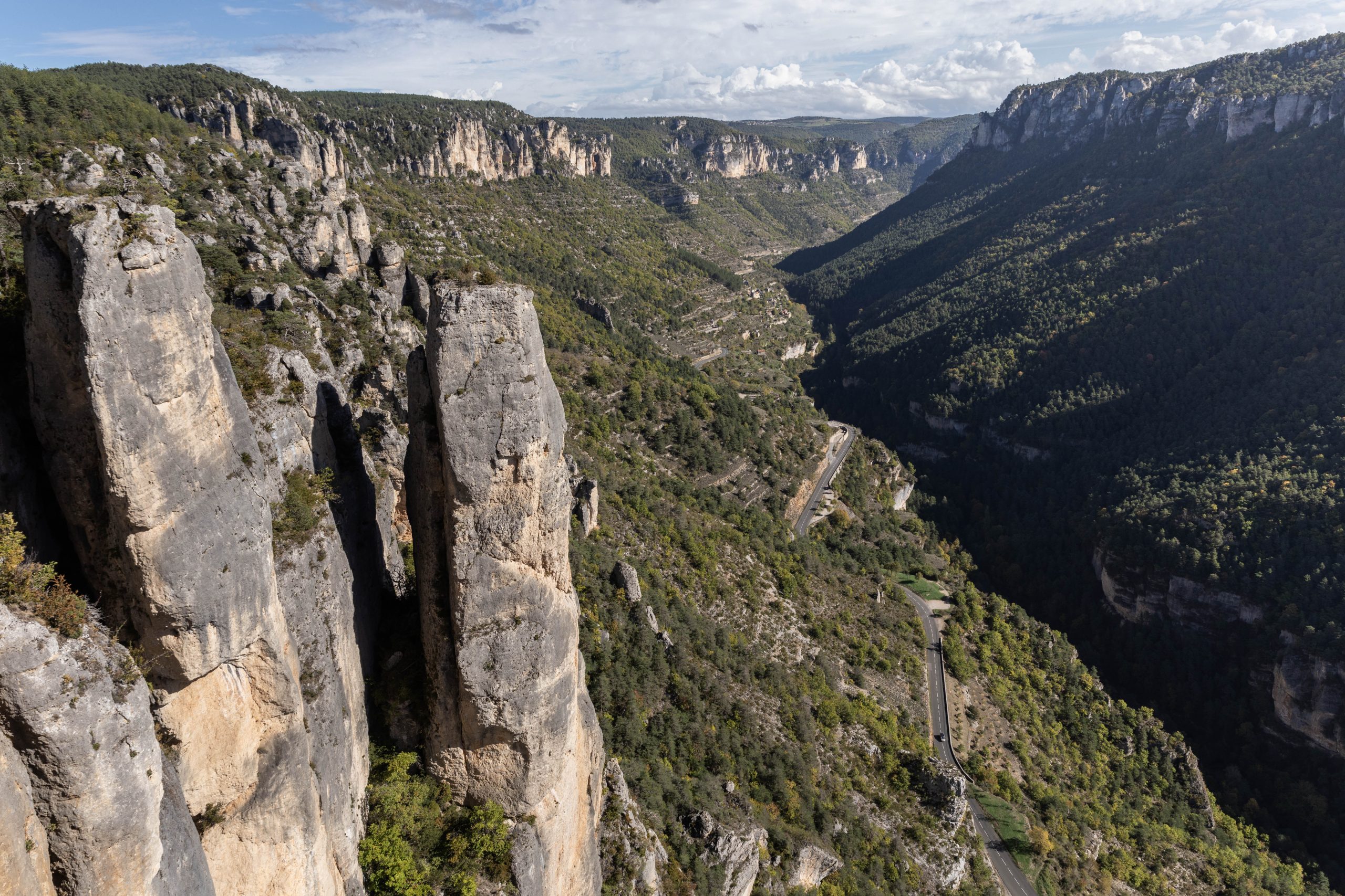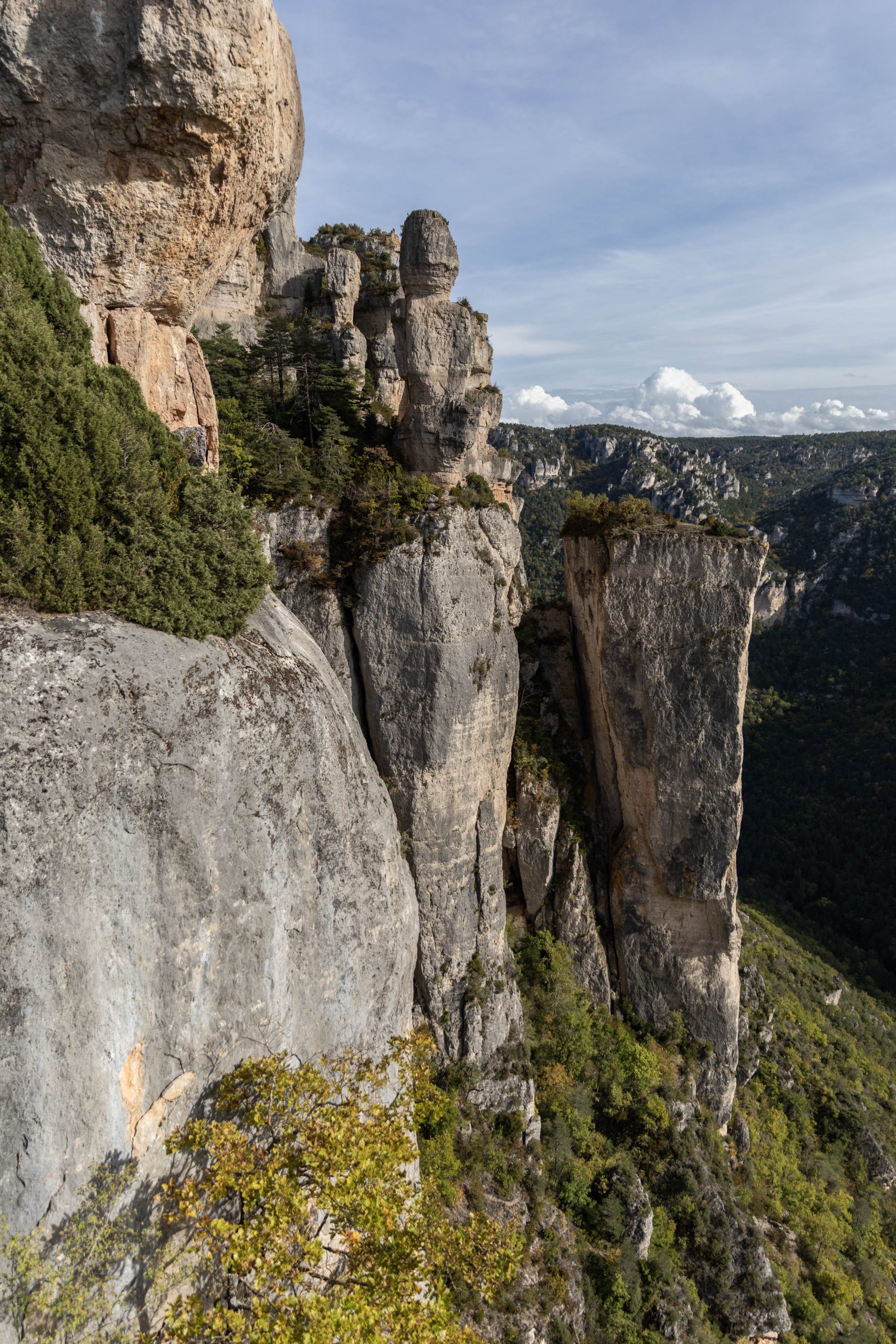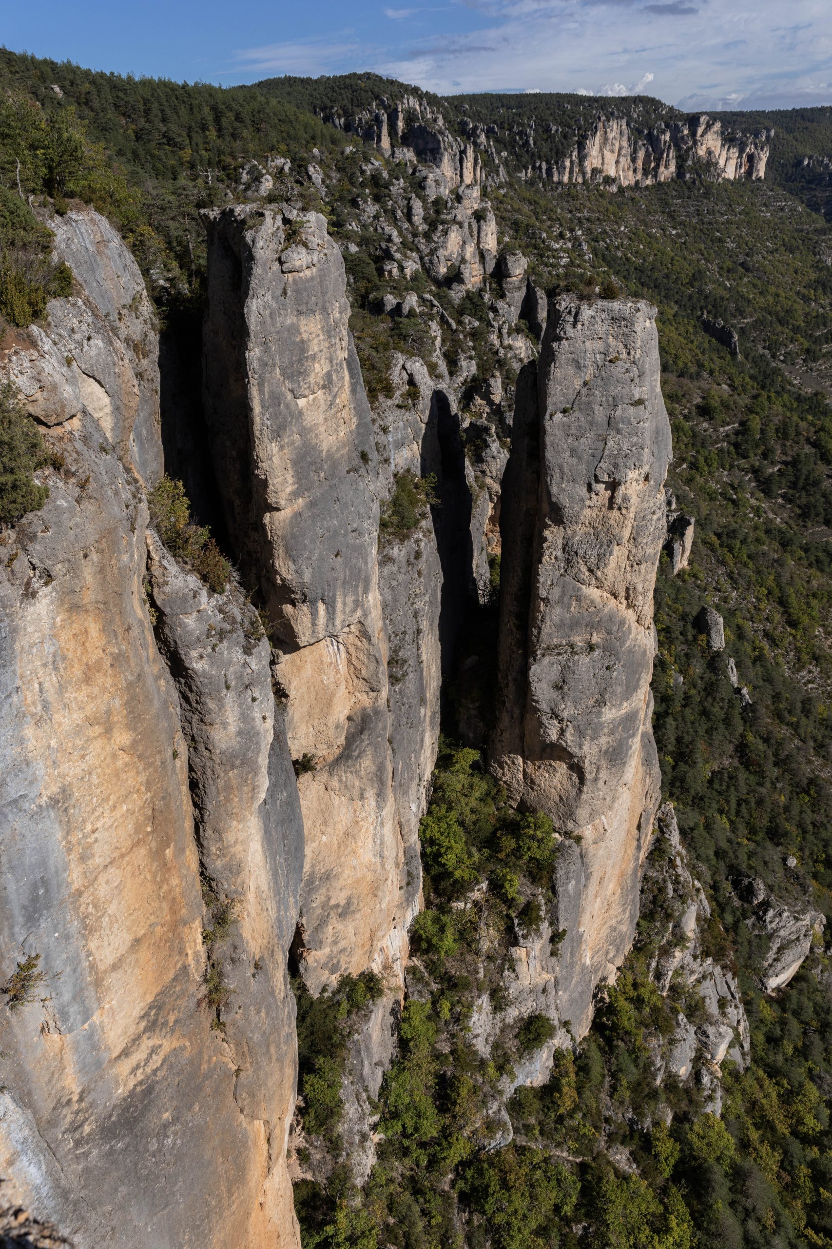 En effet, le chemin longe ensuite les falaises abruptes qui surplombent de 350 m les Gorges de la Jonte.