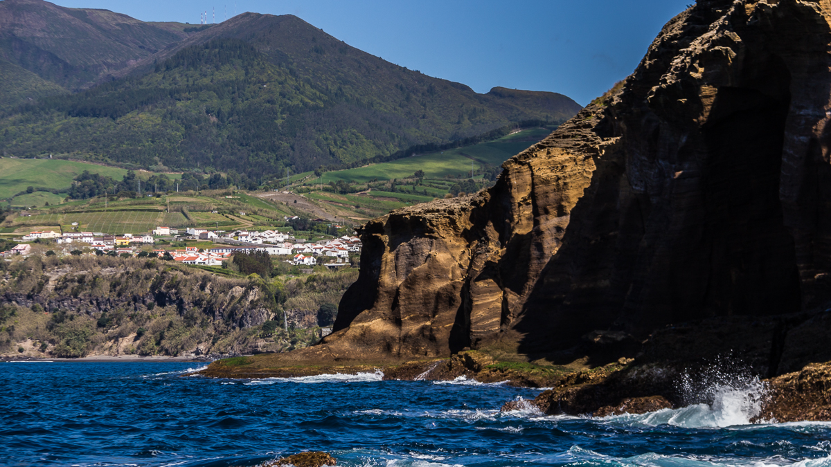 Cap sur la côte sud de Sao Miguel, à la découverte de Vila Franca do Campo et à la rencontre des dauphins et des baleines avec Terra Azul.