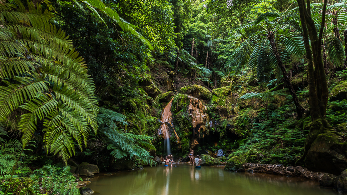 Caldeira Velha est un lieu enchanteur : un petit sentier aménagé s’aventure au creux d’une végétation luxuriante, presque tropicale. Le site est jalonné de plusieurs cascades et de petits bassins emplis d’une eau sulfurée à 38°C. Le lieu idéal pour se détendre et se relaxer au cœur d’une improbable jungle verdoyante.