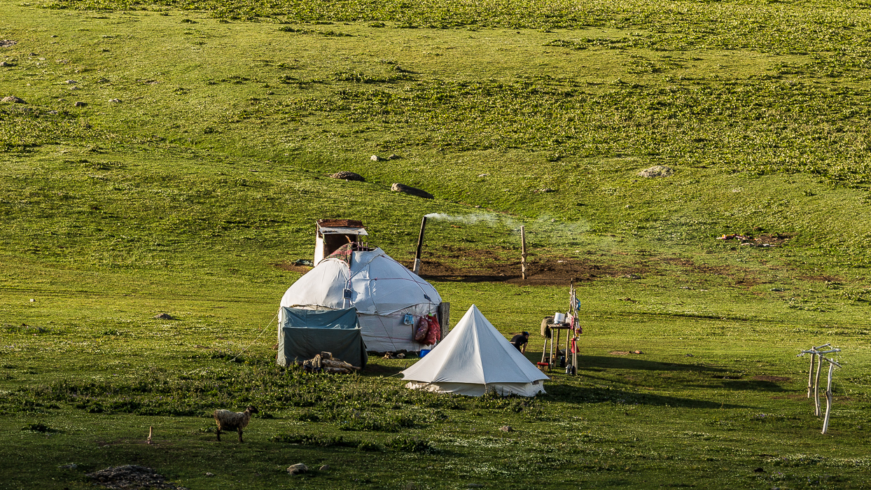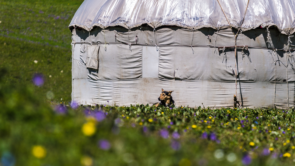 Au Kirghizistan, les yourtes sont installées pour le printemps et l’été, lorsque les éleveurs conduisent leurs troupeaux vers les pâturages en montagne. Ils sont semi-nomades. (D’ailleurs, la yourte figure sur le drapeau Kirghize).