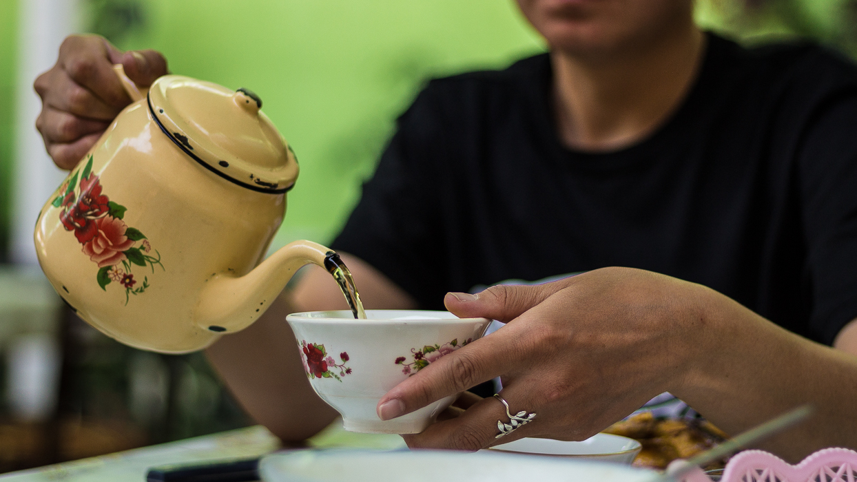 Le thé, un élément important de la culture du Kirghizistan. Symbole d’hospitalité, on en boit à chaque repas.