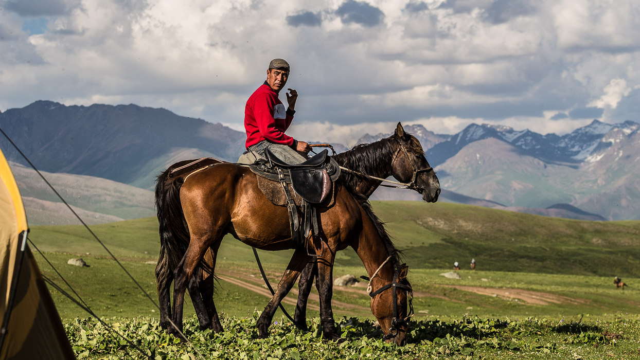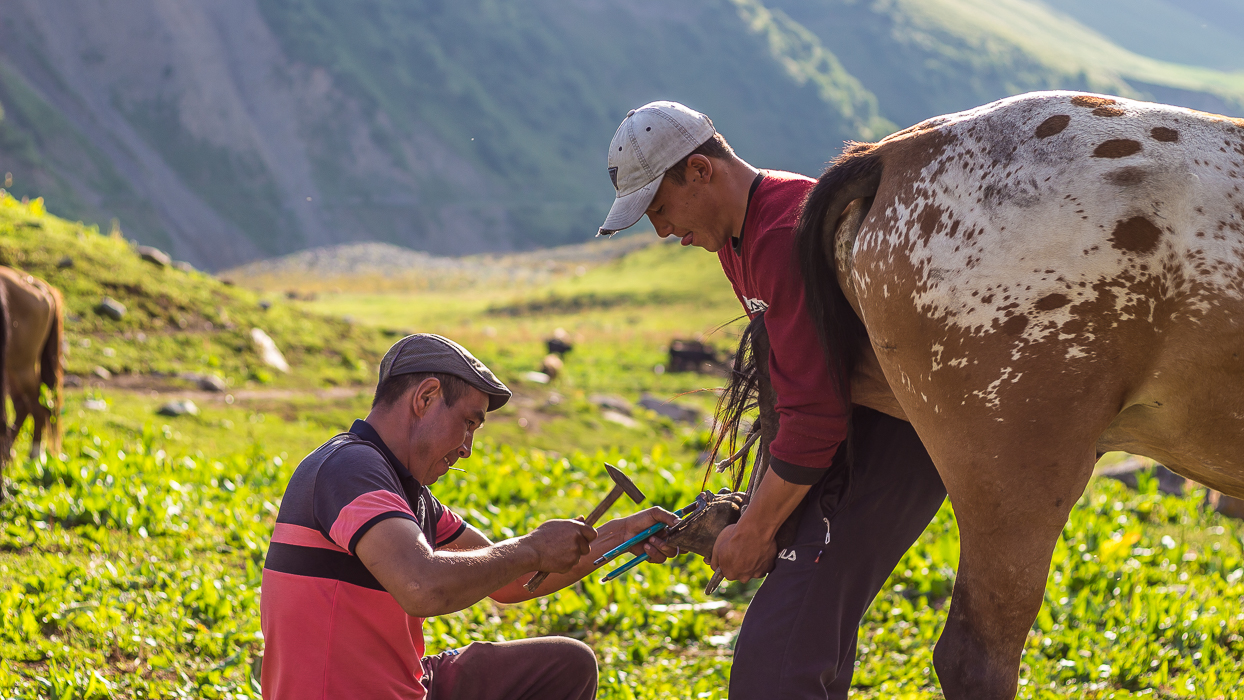 Je commence à comprendre à quel point les chevaux sont un élément central de la culture au Kirghizistan. Ils sont partout, auprès des hommes ou galopant librement dans les steppes. Les méthodes d’équitation que j’ai pu observer sont peut-être un peu rudes et il ne semble pas y avoir de tendresse comme avec nos animaux de compagnie; pourtant on perçoit vite que le destin des hommes et celui des chevaux est intimement lié…
